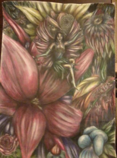The dream for the return of Eden. Gift Art for Linda Done with pencils and pencil crayons on a large paper.