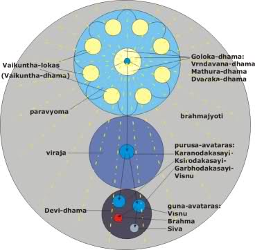 Kṛṣṇaloka is divided into three different portions: Gokula,