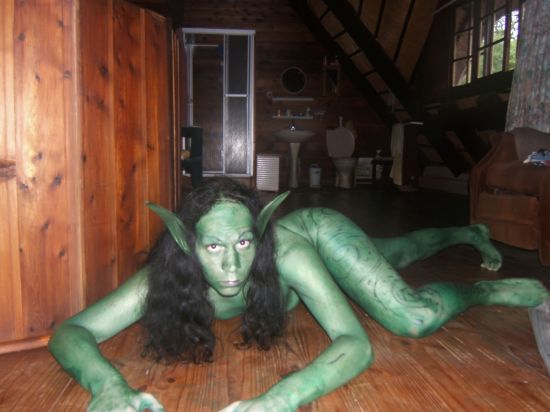 Myself in live art, photographed as an elf, this time applying green colour to the skin.
